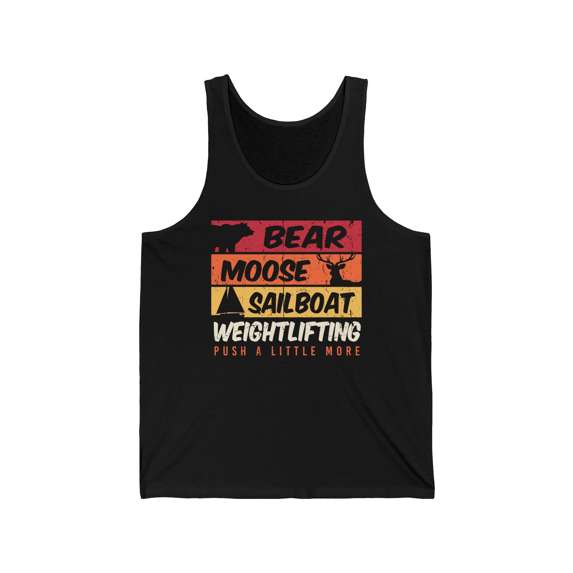 Motivational Unisex Jersey Tank - Bear, Moose, Sailboat & Weightlifting Graphic
